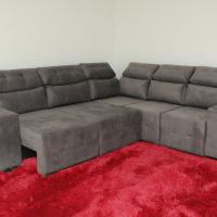 Encosto reclinável com catraca 5 estágios, almofadas fixas com 100% de fibra de silicone, percinta elástica.